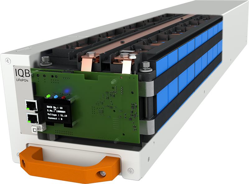 Sturdy handle for easy battery hot-swapping in the cabinet (patent pending).